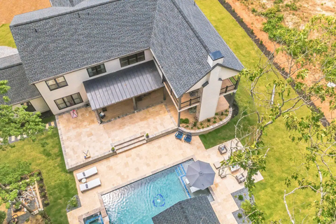 Cook up culinary delights for the whole party in the outdoor fully equipped, outdoor kitchen and grill or prepare a more intimate meal inside for an elegant seating with modern kitchen and premium appliances, ample counter space, and a large island.